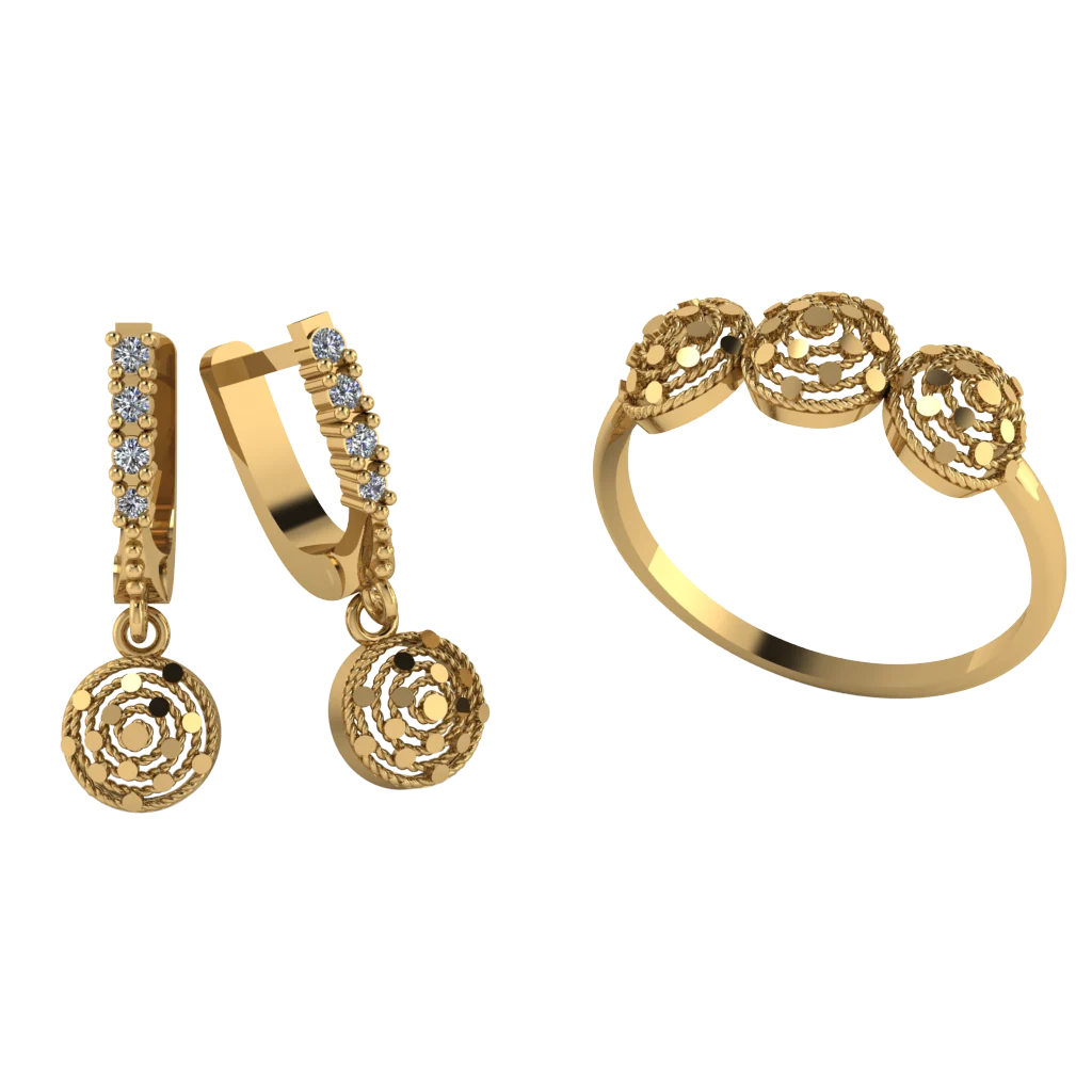 Дуэт кольца и серёг: с центральным вытянутым камнем и прозрачными камнями в сияющей окантовке. Подходит как аккуратный подарок и для повседневных образов.