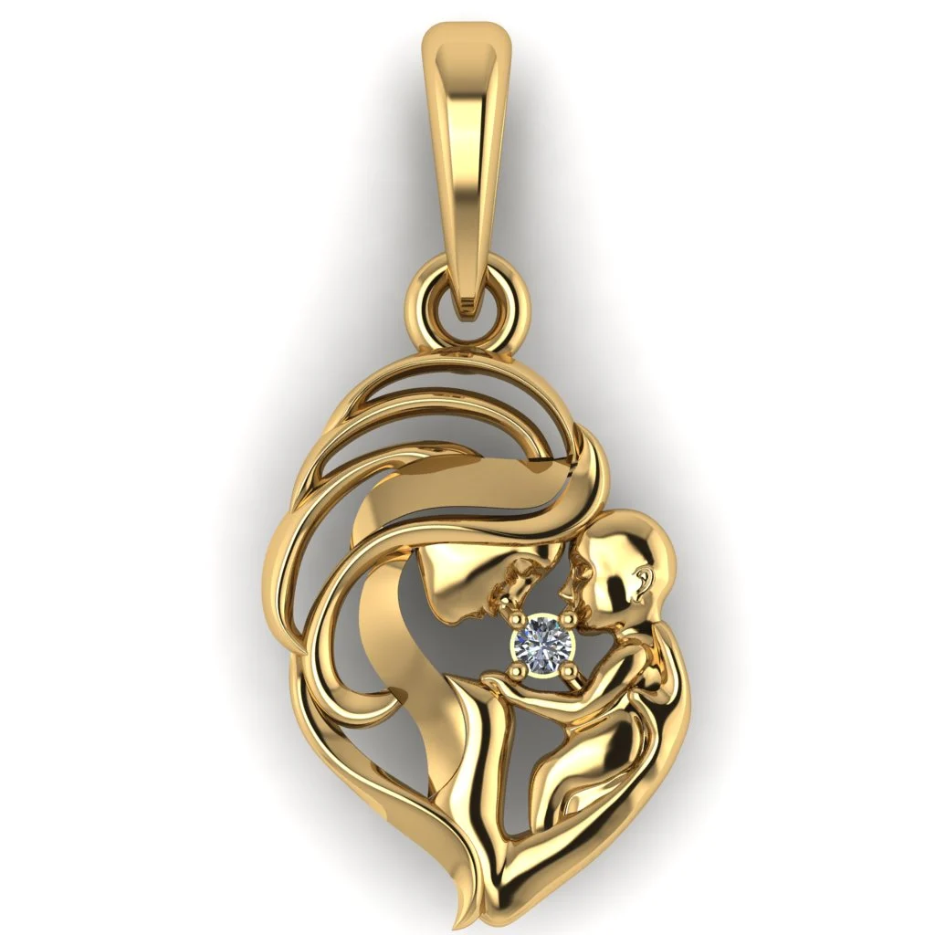 Плавные линии складываются в сердце, внутри силуэт пары: небольшой камень добавляет сияния, а тёплое золото делает дизайн лёгким, романтичным и неброским в носке.