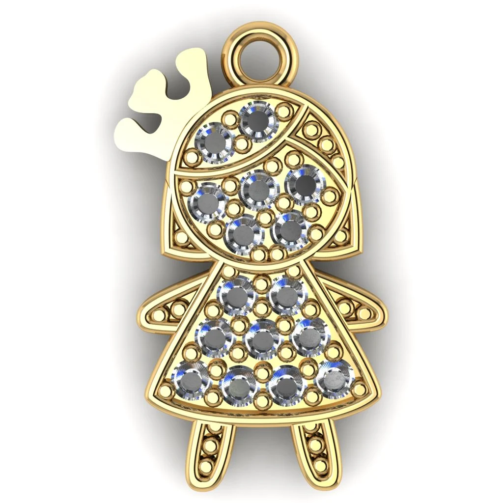 Силуэт девушки в танце с развевающимися волосами: на платье россыпь камней, в золоте подвеска выглядит лёгкой и воздушной, подчёркивая движение и изящество всегда.