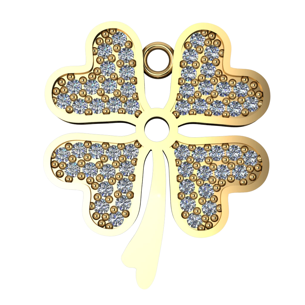 Праздничный четырёхлистник, полностью покрытый прозрачными камнями на всех лепестках, с аккуратной зернью закрепки. Сияние равномерное, а золото по контуру подчёркивает форму и делает кулон роскошным.