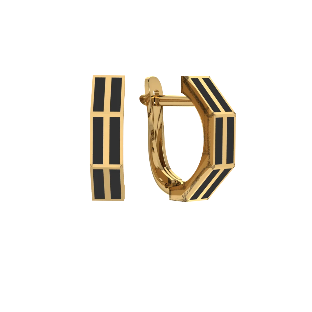 Серьги с тёмным покрытием и ажурным рисунком. Контраст подчёркивает геометрию и делает пару заметной.