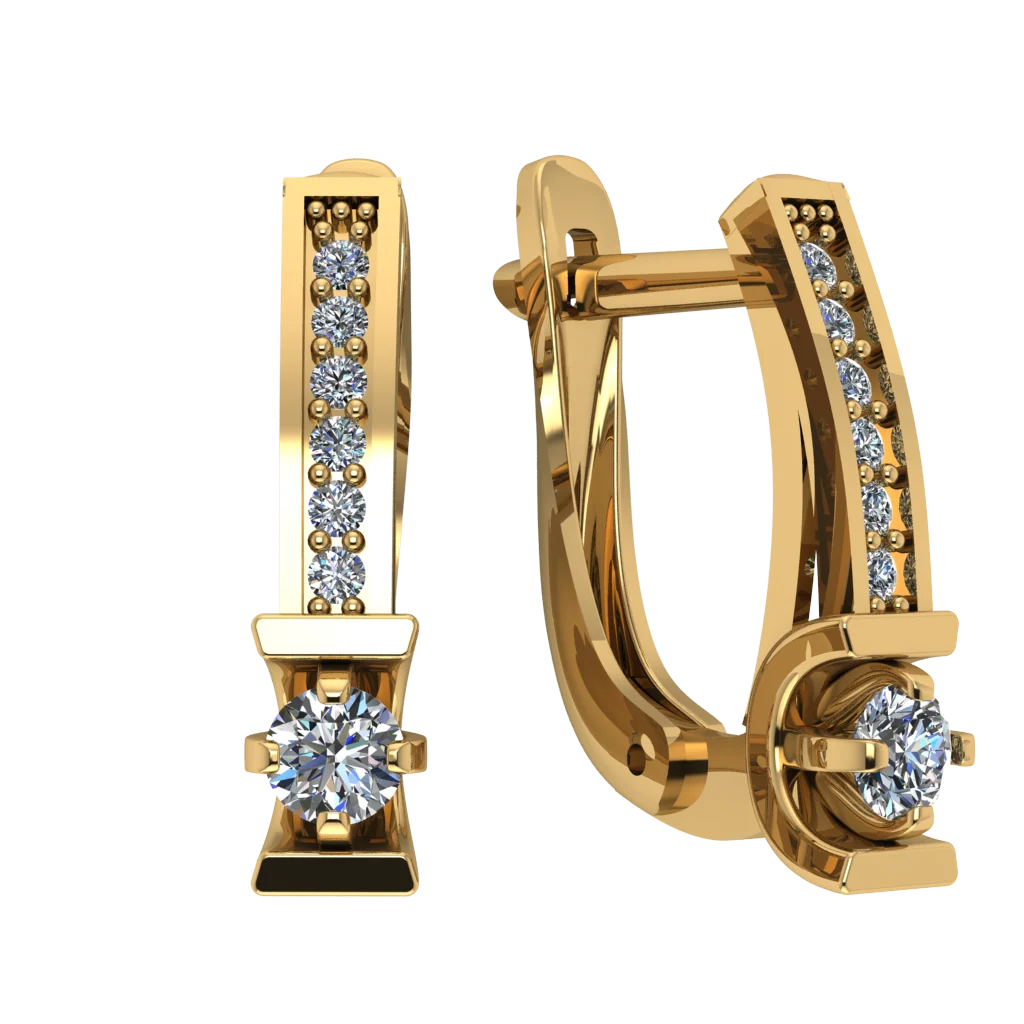 Серьги с вертикальной дорожкой мелких камней и крупным прозрачным камнем снизу. Чёткая геометрия и яркий блеск.