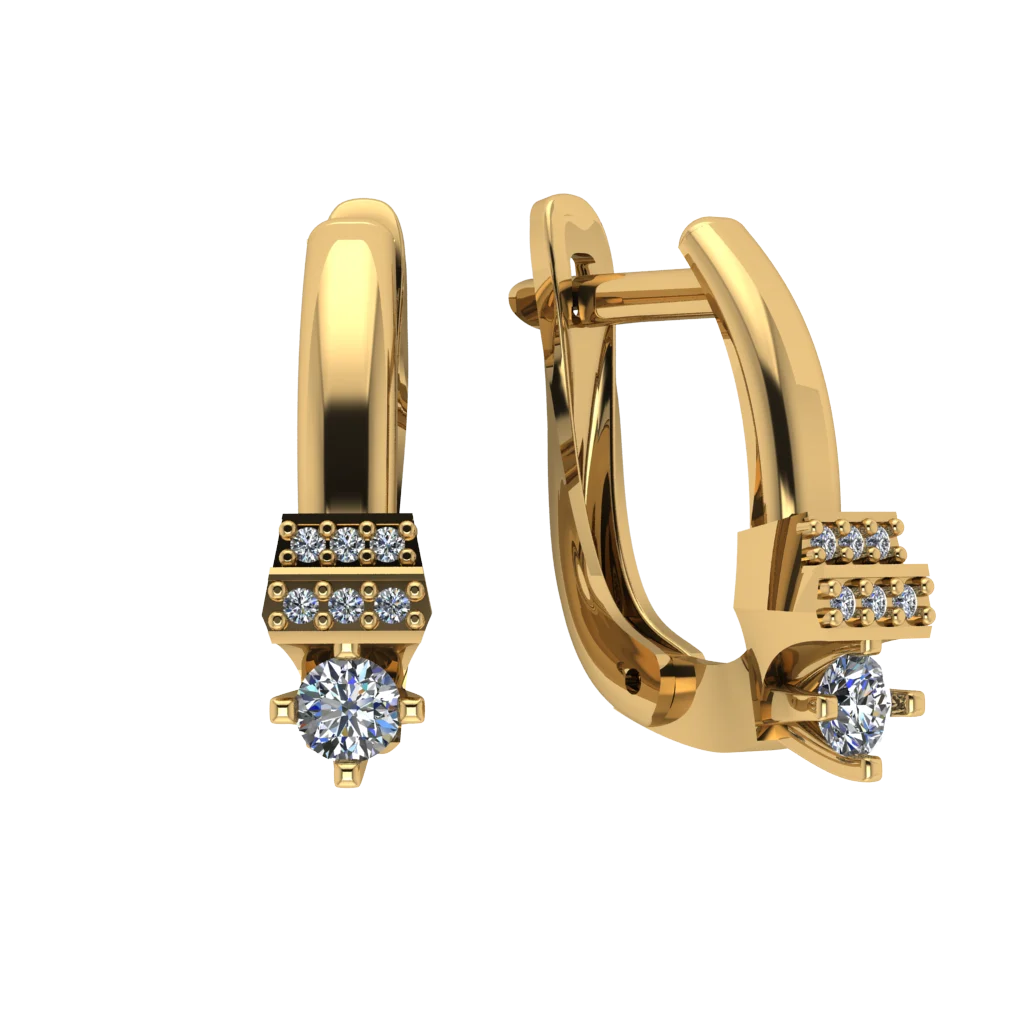 Серьги с ступенчатой вставкой из мелких камней и крупным камнем снизу. Архитектурный дизайн с ярким блеском.
