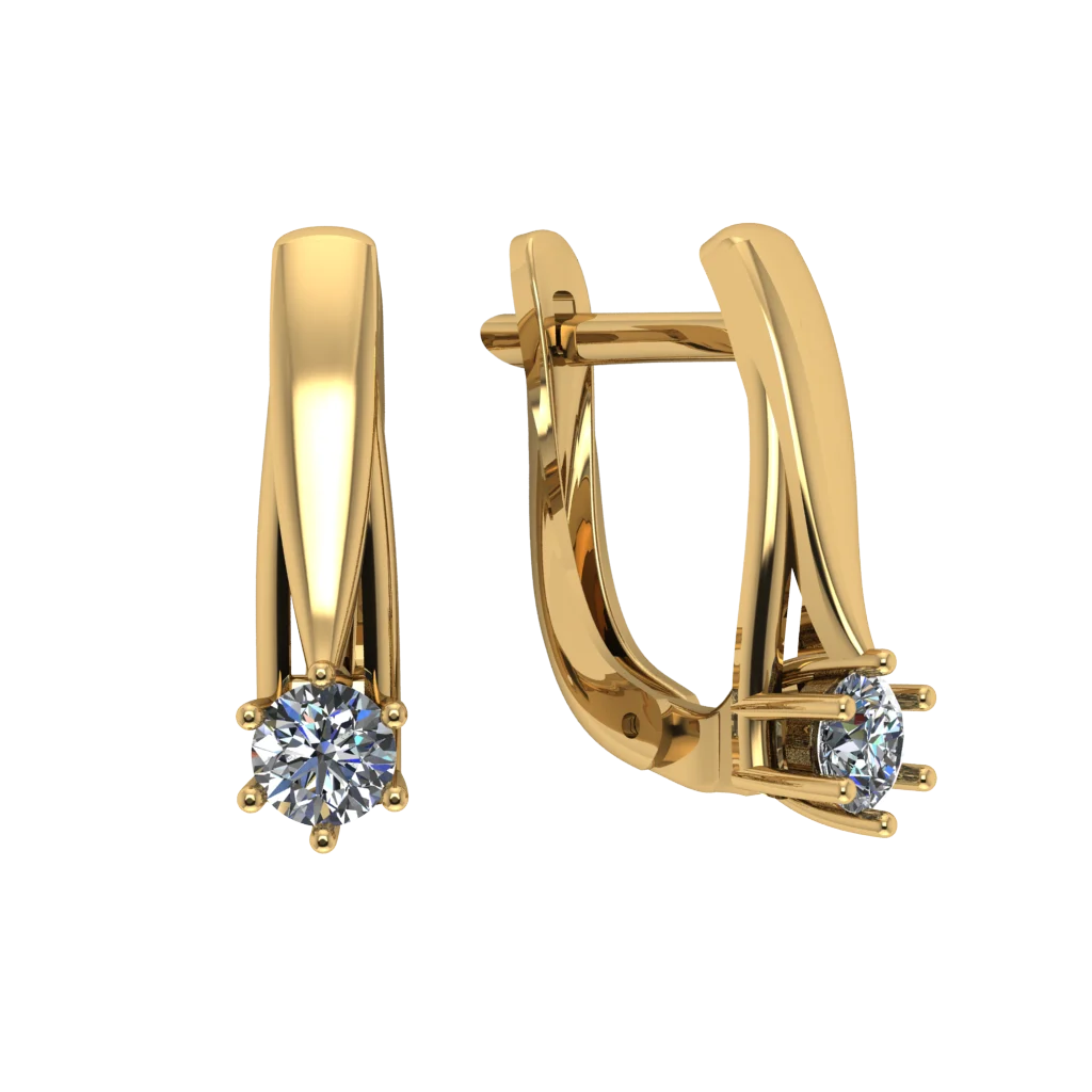 Серьги с гладкой лентой и крупным камнем внизу, крепление с боковыми лапками. Минимализм с выразительной деталью.