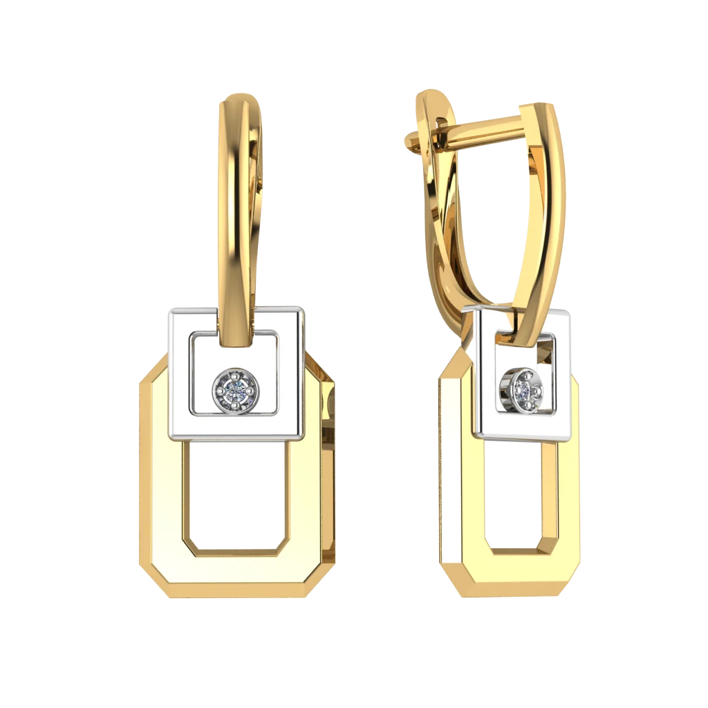 Подвесные серьги из золота со вставками.