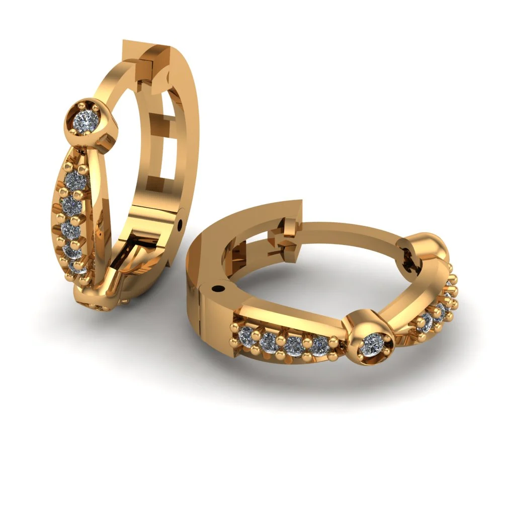 Серьги с круглой оправой-акцентом и прямой полосой камней. Чистая геометрия с одной яркой деталью.