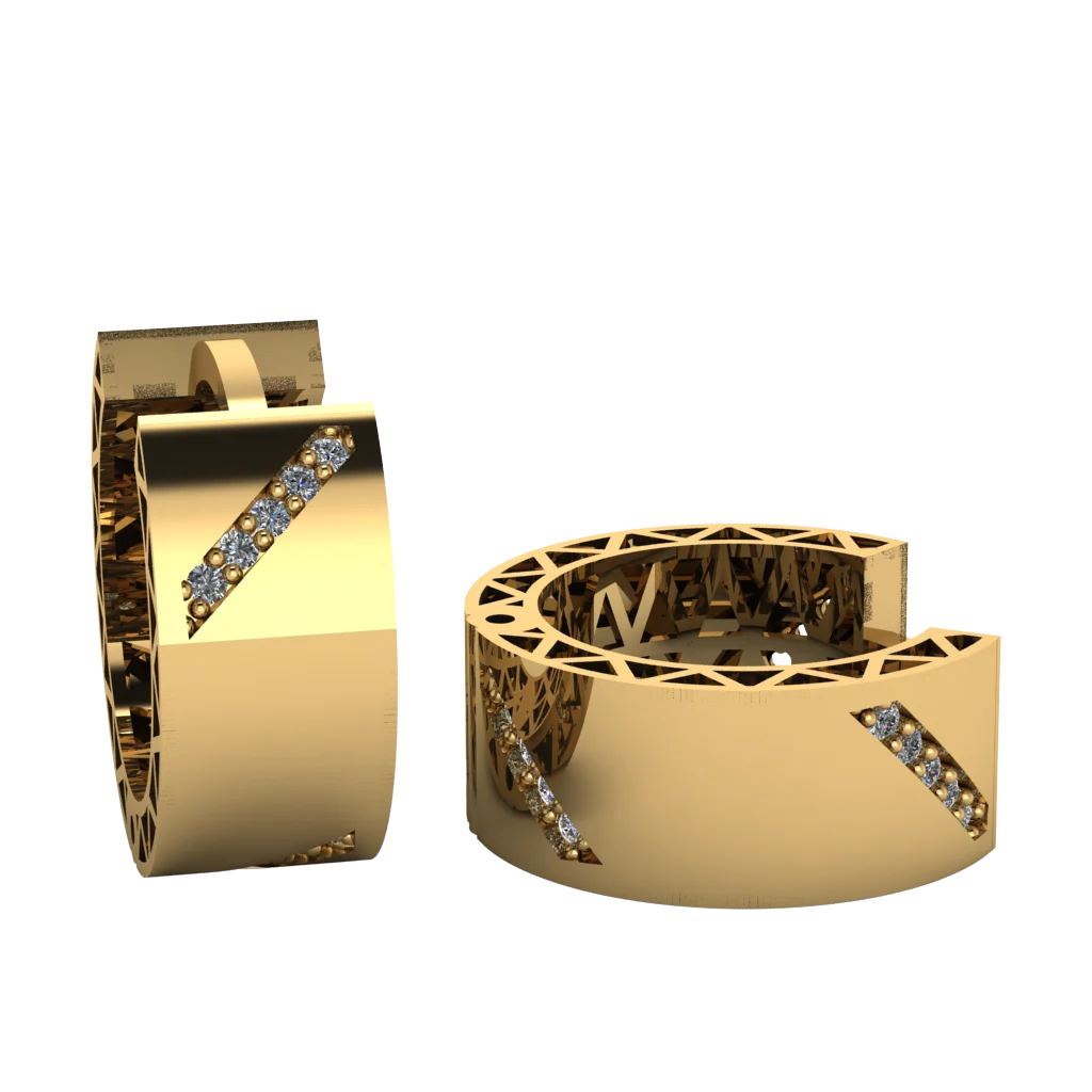 Серьги с диагональной дорожкой камней, уходящей к краю. Лаконичный обод и динамичный акцент без лишнего декора.