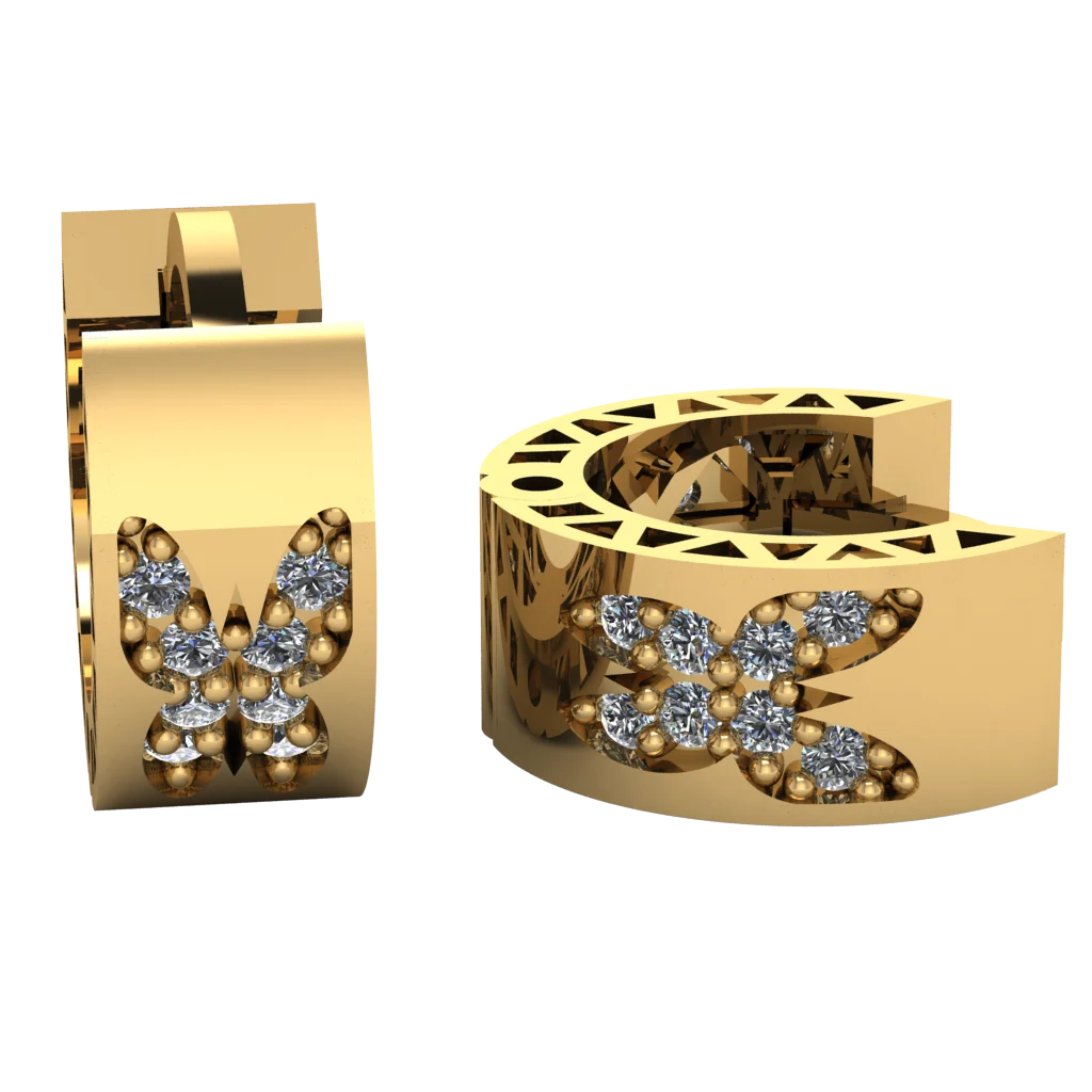 Серьги с «крыльями» и россыпью камней, собранной в динамичный кластер. Фантазийный силуэт выглядит нарядно.