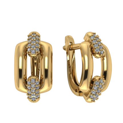 Серьги с прямоугольной вставкой камней по центру. Чёткая геометрия и аккуратное мерцание на каждый день.