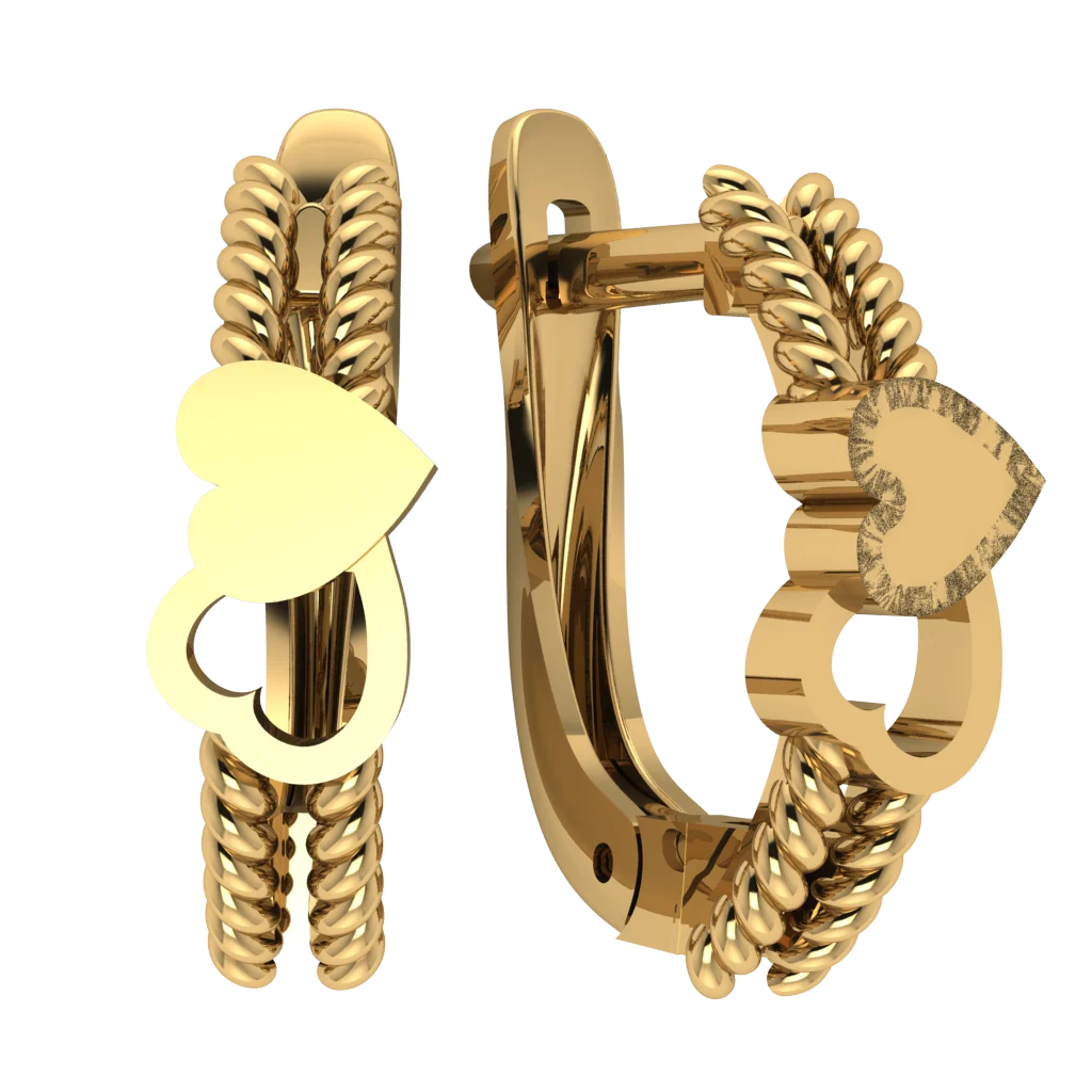 Серьги с сердцем на боковой части и фактурным ободом. Романтичный акцент в современном исполнении.