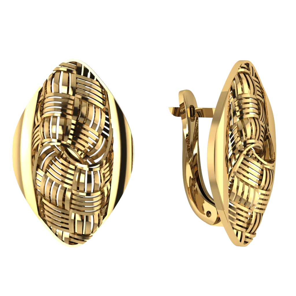 Серьги с овальной формой и плетёным узором внутри. Орнаментальная текстура делает модель необычной.