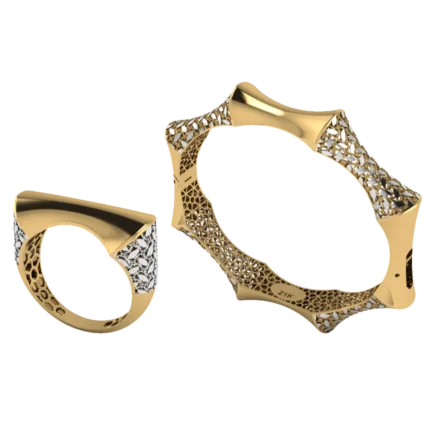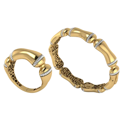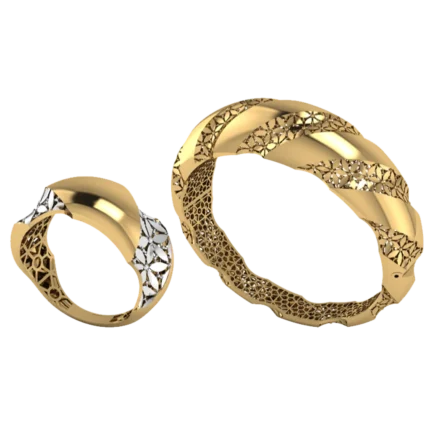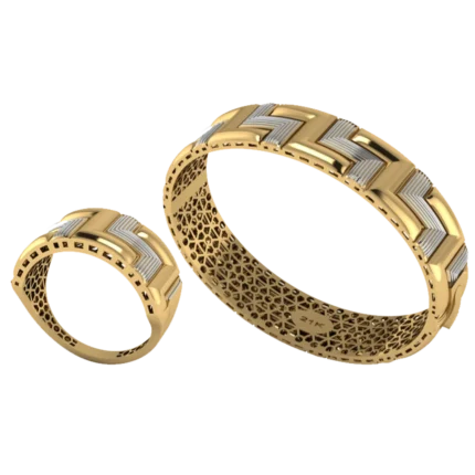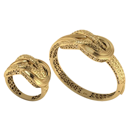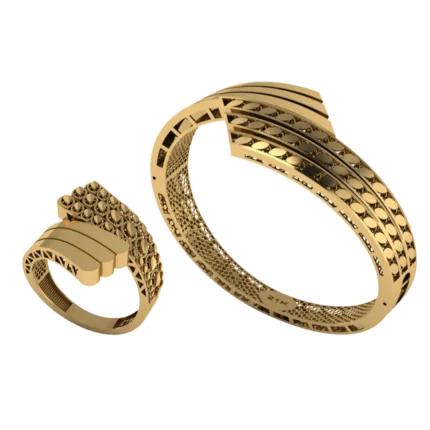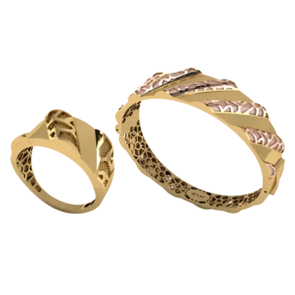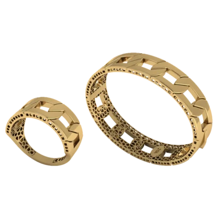 Открытый жёсткий браслет с аккуратной шириной и ровной дугой с лёгкой фактурой, которая оживляет поверхность без ярких вставок, где акцент строится на форме и полировке. Жёсткая форма смотрится собранно и подходит для повседневных и вечерних сочетаний. Полировка подчёркивает золото и даёт ровные тёплые блики.